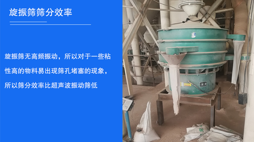 而旋振篩無高頻振動,所以對于一些粘性高的物料易出現篩孔堵塞的現象,所以篩分效率比超聲波振動篩低。