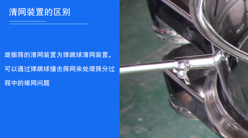 旋振篩的清網裝置為彈跳球清網裝置,可以通過彈跳球撞擊篩網來處理篩分過程中的堵網問題。