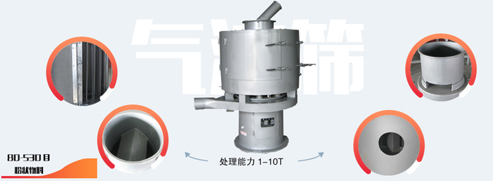 氣流篩可對細度范圍在80-500目內的粉狀物料很好的連續篩分,篩網可任意更換。它主要用來解決煤粉精篩、比重輕、大產量等篩分難題!氣流篩的篩分效率非常高,可達到95%以上。單臺每小時工作產量是普通振動篩的5-10倍。