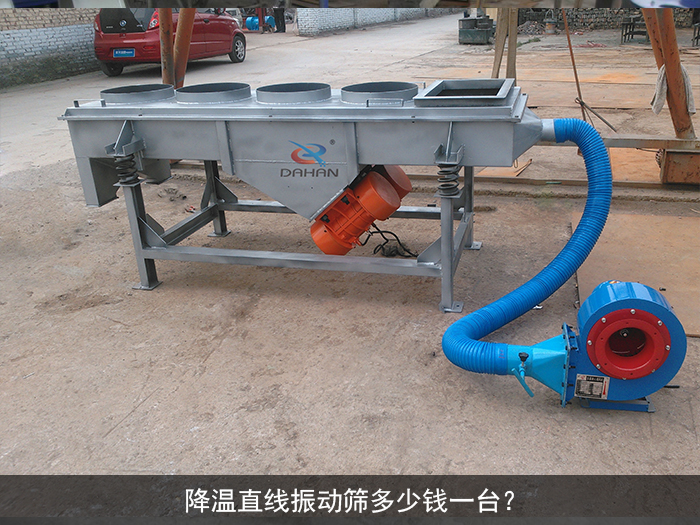 降溫直線振動篩是在大漢生產的DZSF系列直線振動篩的基礎上,增加了風機降溫冷卻系統的新型直線振動篩,安裝后可將高溫物料降溫后繼續篩分,這樣一臺風機降溫冷卻系統的價格在幾百到上千元不等,這是降溫直線振動篩加高提升的一個方面。