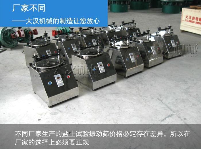 除了以上購買方式造成的價格差異外,材質廠家也是造成鹽土試驗振動篩價格差異的因素: