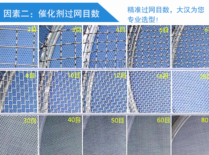 用戶對催化劑振動篩的過網目數(孔徑)也是催化劑振動篩選型的重要參考之一,催化劑從10-100目的大小不等,篩孔越大產量就越高,篩網目數大篩孔就小,所以的相對于目數小的就不容易過網,從而造成堵網現象。因為過網目數的不同在一定程度上也會影響催化劑振動篩選型,所以只有您提供了精準的過網目數,大漢才能為您精準選型。