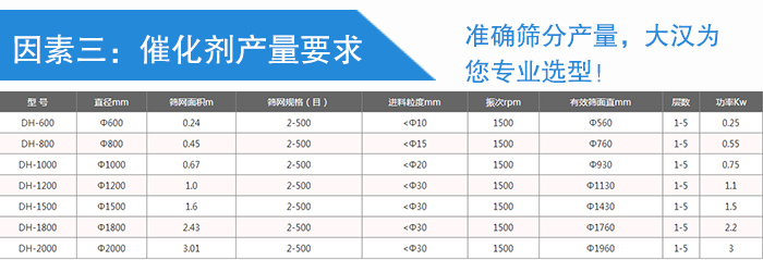 不同的用戶、企業(yè)、行業(yè)對催化劑的篩分處理量要求也是不同的,大漢機械所生產的能篩分催化劑的振動篩多大十幾種型號,產量小的就適用小型號振動篩(如:DH-400、DH-600型等);產量的的就適用大型號振動篩(如:DH-1500、DH-1800型等)您的準確篩分處理產量也是影響催化劑振動篩選型的重要參考。