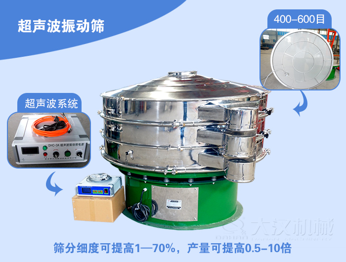 超聲波振動篩型號有:DHC-400、DHC-600、DHC-800、DHC-1000、DHC-1200、DHC-1500、DHC-1800、DHC-2000