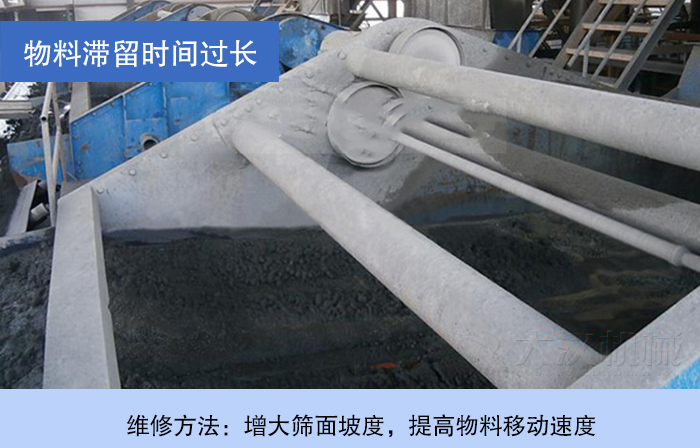 維修方法:√ 增大篩面坡度,提高物料移動速度