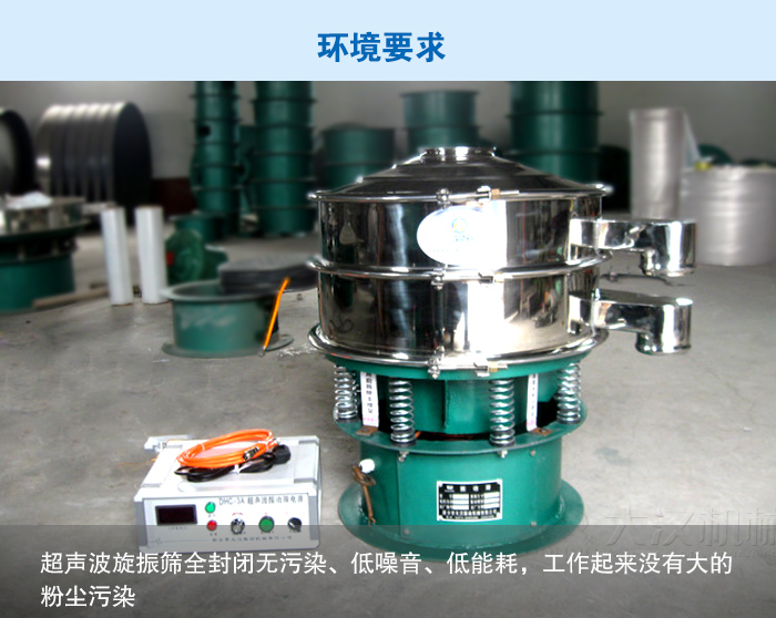 解決方法:超聲波旋振篩全封閉無污染、低噪音、低能耗,工作起來沒有大的粉塵污染,大大改善了環境污染且又節省人力勞動。還有它特有的超聲波清網功能,使篩網在受到低頻振動的同時疊加高頻超聲振動,使篩網上的大顆粒成懸浮態,以此來避免堵塞網孔。