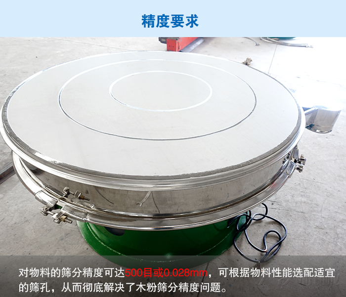解決方法:超聲波旋振篩具有體積小、結構簡單合理、篩分精度高、維修方便、保養簡單、篩網壽命長等優點。可單層或多層使用,可達到五層,對物料的篩分精度可達500目或0.028mm,可根據物料性能選配適宜的篩孔,從而解決了木粉篩分精度問題。