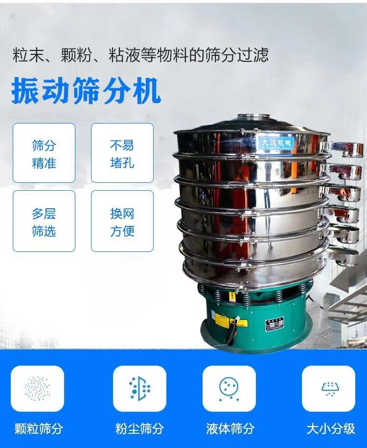 以上是對振動篩分機應用的介紹,振動篩分機專為提高粉末、顆粒或液體產品的質量而設計,用于產品的檢查篩選,通過增加篩層數,產品以不同的細度進行篩分,以達到精確的粒度分布。